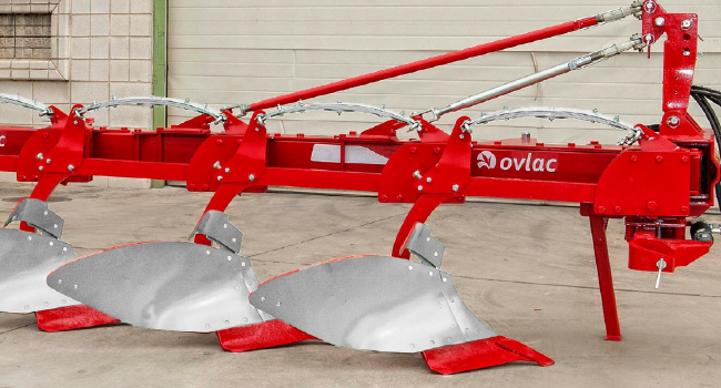 Ovlac Conventional, fully mounted ploughs are suitable for tractors up to 240hp. With shearbolt protection and manual furrow width adjustment (FF) or spring auto-reset protection and hydraulic vari-width furrow adjustment (FB).